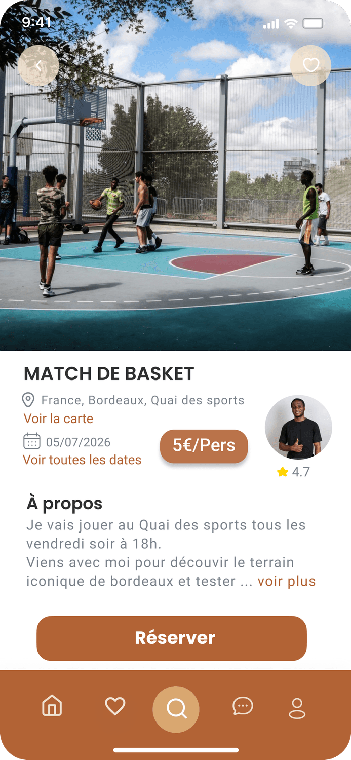 • Sportives : running, tour à vélo, partie de padel, match de basket… 🏀